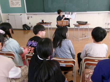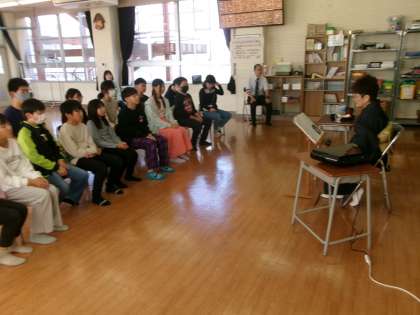 今まで学習した物語や詩の朗読を聞かせていただいたり、手拍子でリズムに合わせたゲームをしたりしました。ありがとうございました。