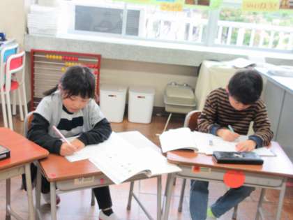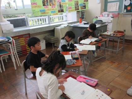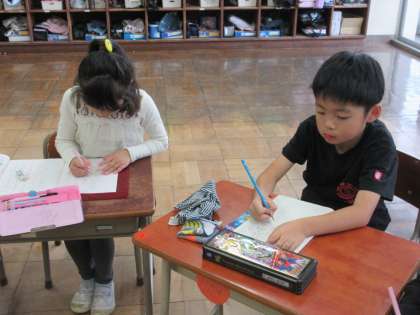 ノートに習った漢字を書いています。1年生はひらがな、カタカナ、そしていよいよ漢字を書くことができるようになってきました。なんだかうれしそうです。