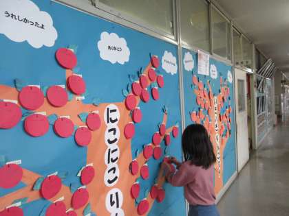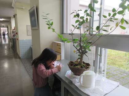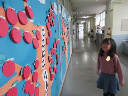 最近、りんごの実が増えてきました。一人で書いたり、貼ったりする池多っ子もいます。1年生も「りんごの実 名人になりたい」と張り切っています。