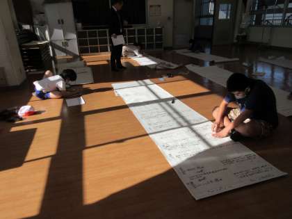 ぽかぽかの視聴覚室では、150周年記念式で発表する準備を進めていました。