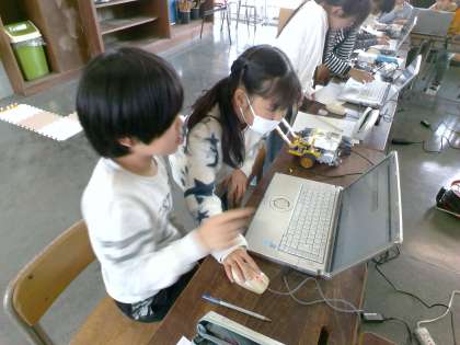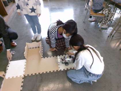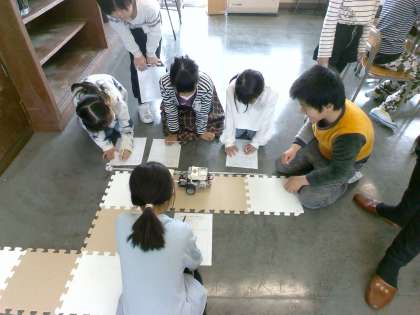 子供たちは、「災害で孤立してしまった人に食料を届ける」というミッションをクリアするために、プログラムを考えました。失敗しながら、友達と何度も考え直し、クリアするためにがんばっていました。クリアできるとみんなから歓声があがっていました。