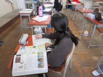 学習のまとめに取り組んでいます。プリントを解き、自分で確認していました。