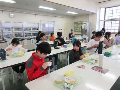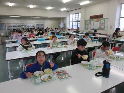 温かい給食をみんなで食べてきます。何気ない日常生活がうれしいですね。