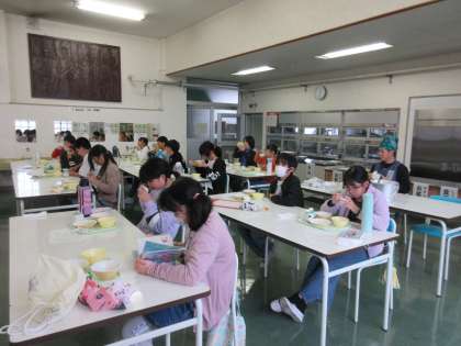 デザートのりんごヨーグルトを楽しみにしているようです。