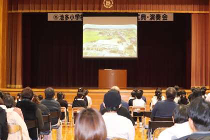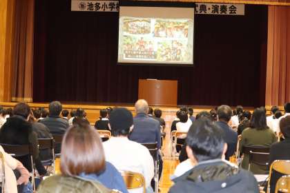 最後は、明治からの令和に至るまでの池多小学校の記録をまとめられたスライドショー「池多のキセキ〜時を超えて 笑顔を〜」です。