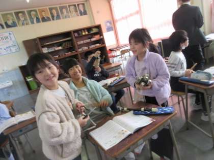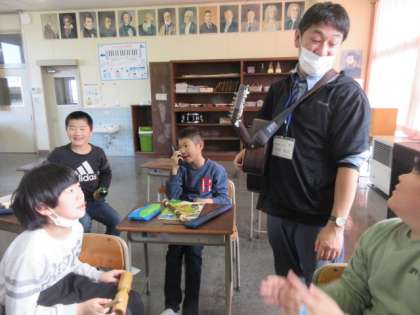 打楽器の音とリズムをうまく組み合わせて練習をします。