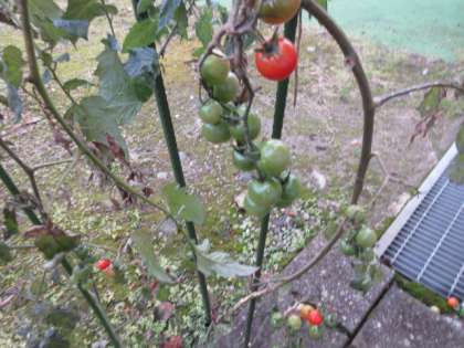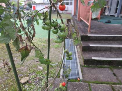 気温が随分下がってきましたが、ミニトマトは赤く実っています。寒さの中でもがんばっていますね。