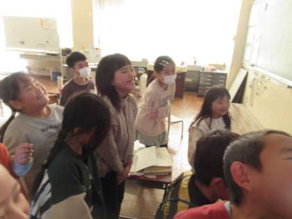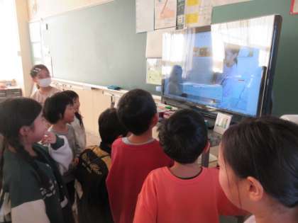 自分たちの番組を作成中です。おもしろい場面があったようで、大喜びの様子でした。