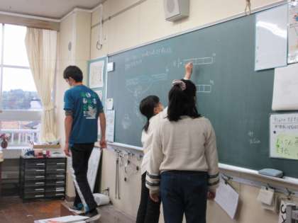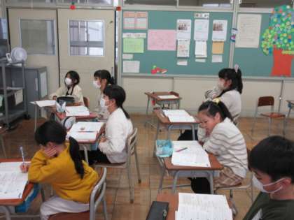 分数の学習です。数で表したり、色を塗ったりして、分数の大きさを理解しようとしています。