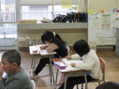 2年生も真剣にかけ算九九の表をつくっています。すらすら書くことができましたね。