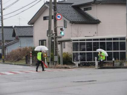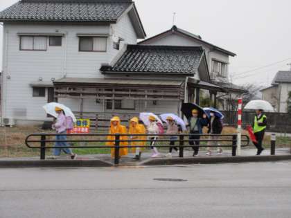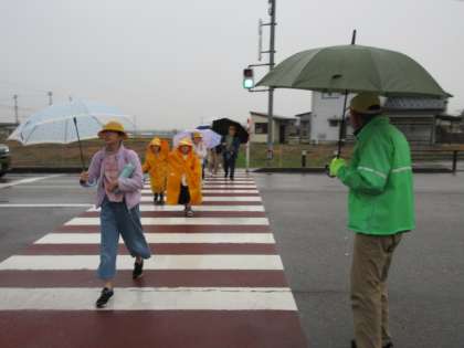 見守っていただいている中、子供たちは元気に登校しました。ありがとうございました。