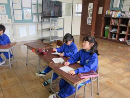 計算にチャレンジの練習に取り組んでいます。「簡単、簡単」と子供たちは話していましたが、徐々にレベルが上がっていくようです。