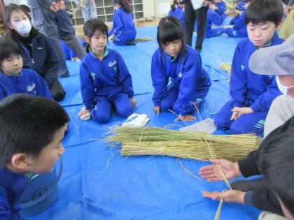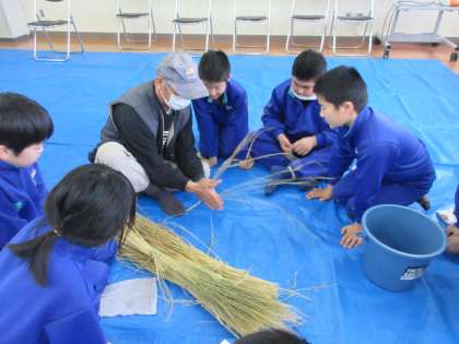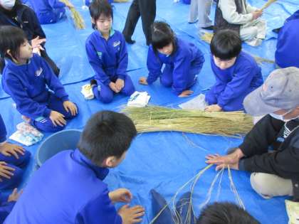 手際よく縄をなっていらっしゃる様子をしっかり観察しています。