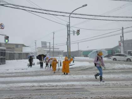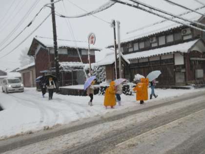 第2学期最終日です。雪が降る中、がんばって登校しています。