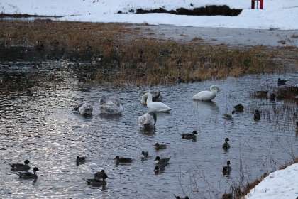 今朝の田尻池は時折雨粒落ちてくる空模様です。飛来数は31羽でした。