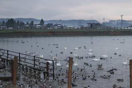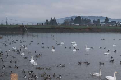 今朝の田尻池はたくさんの白鳥でにぎわっていました。飛来数は67羽くらいでした。