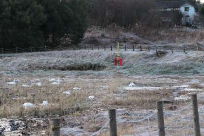 今朝の田尻池は気持ちよく晴れています。飛来数は68羽でした。