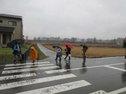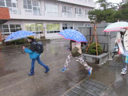 雨の中の登校になりました。