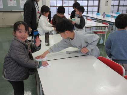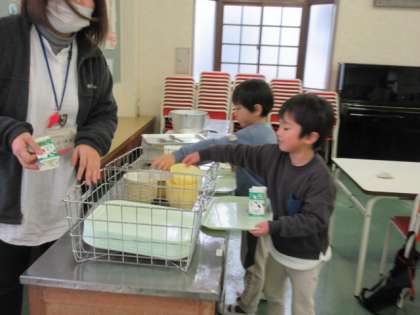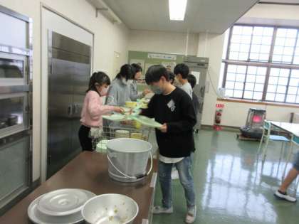 後片付けをする子供たちから、「給食はおいしかったー」という声が聞かれました。