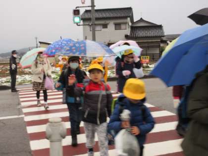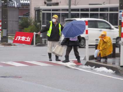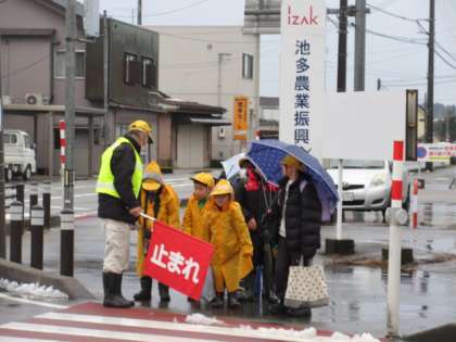 冷たい雨が降る中、子供たちの安全な登校を見守っていただいています。ありがとうございます。