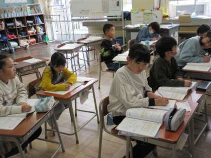 3年生も、一文字一文字集中して黒板を書き写しています。