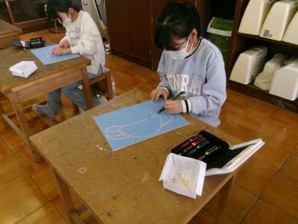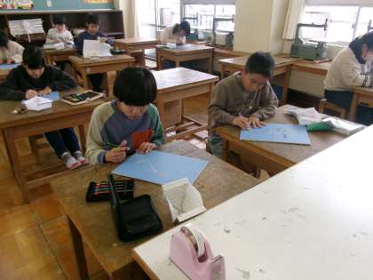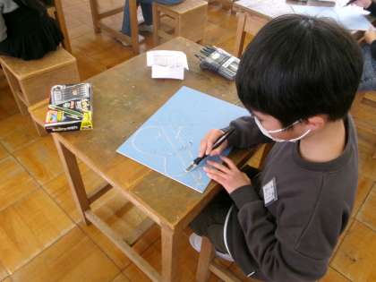 図画工作科では、版画の学習をしています。3年生は、初めての彫刻刀に挑戦しました。安全に気を付けながら、真剣に彫っていました。