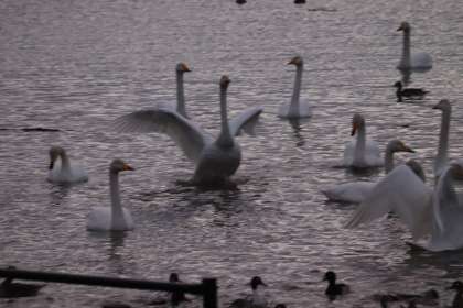 今朝の田尻池は小雨が降っています。飛来数は90羽くらいでした。