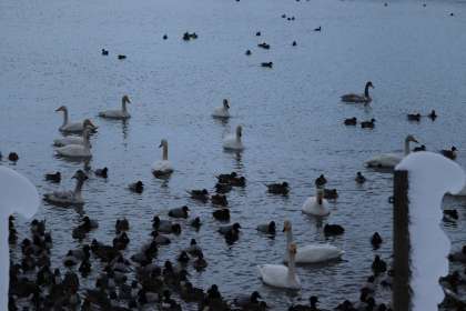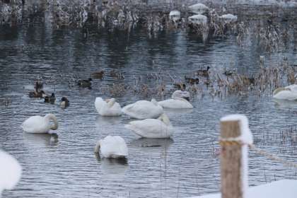 今朝の田尻池も銀世界です。飛来数は50羽ほどでした。