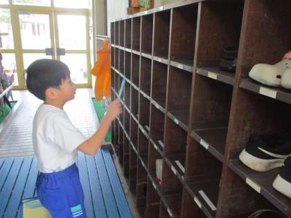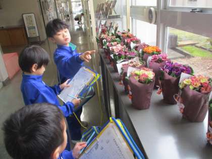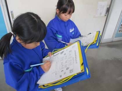 ビンゴを達成するために、学校内にある物を一生懸命、数えることができました。学校にあるトロフィーの数や一輪車の数が多くて、驚く1年生でした。