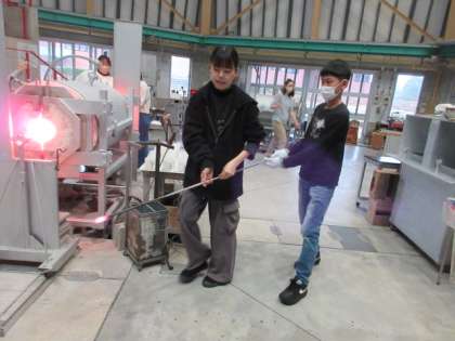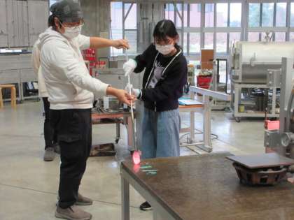 世界でたった一つだけのペーパーウエイトです。ガラス工房の方々が優しく丁寧に教えてくださいます。