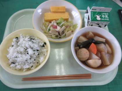 2月2日(金)今日の給食 公開日 2024/02/02 更新日 2024/02/02 池多っ子ゴーゴー 今日のメニューは、わかめご飯、厚焼き卵、ベーコンとエリンギのソテー、おでん、牛乳でした。味がしみたおでんは大人気です。