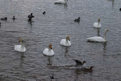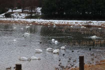今朝の田尻池の空模様は曇り空です。飛来数は64羽でした。