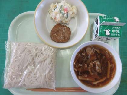 2月8日(木)今日の給食 公開日 2024/02/08 更新日 2024/02/08 池多っ子ゴーゴー 今日のメニューは、ソフト麺の五目あん、鶏つくね、ポテトサラダ、牛乳でした。たっぷりの五目あんが麺に絡んで、おいしかったです。