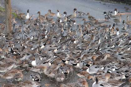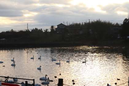 今朝の田尻池は晴れています。飛来数は68羽でした。