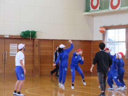 バスケットボールの試合中、いいプレーにはみんなで喜び合います。