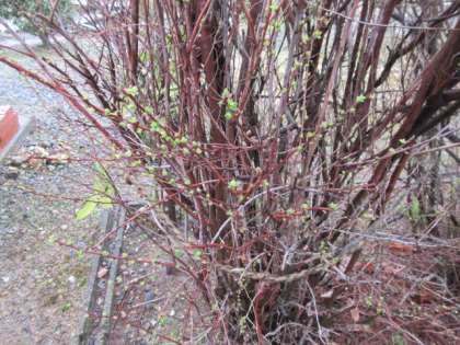 雨が降る寒い朝ですが、小さな緑の葉が見えています。