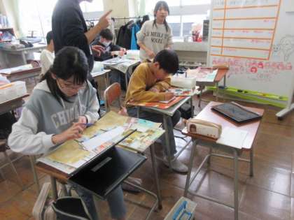 思い出の学校を描いています。特に、6年生にとっては、懐かしさやさみしさを感じる時間になってきました。