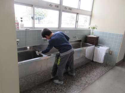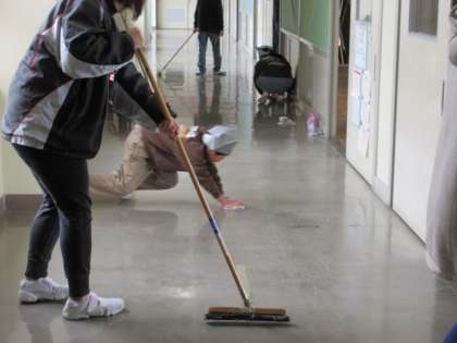 あちらこちらで、力いっぱい清掃に取り組む姿が見られます。