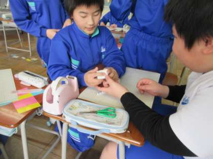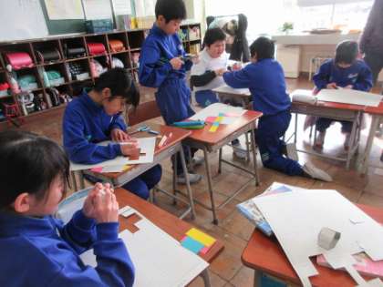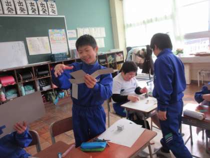 面の数や辺の長さに注意しながら、直方体の箱をつくっています。