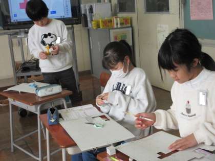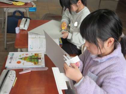 直方体の箱の作り方から、今度は立方体の作り方を考え、つくっています。