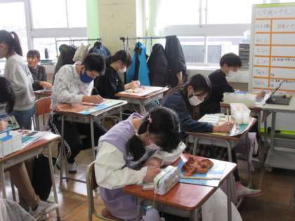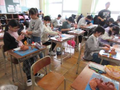 粘土で秘密基地を製作しています。自由な発想が素晴らしいです。