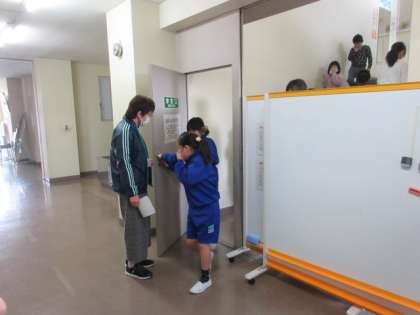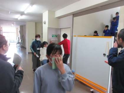 今回は防火扉の通り方を学び、実際に体験しました。次の人のためのちょっとした思いやりが大切になります。