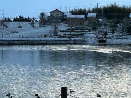 今朝の田尻池は冷え込んでいますが晴れています。6時ごろの飛来数は17羽でした。