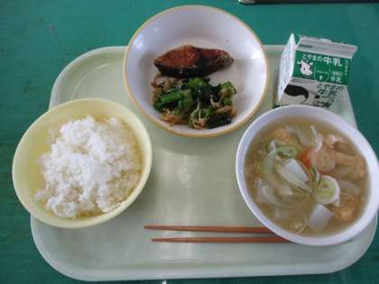 3月21日(木)今日の給食 公開日 2024/03/21 更新日 2024/03/21 池多っ子ゴーゴー 今日のメニューは、ごはん、牛乳、ふくらぎの蒲焼き、はりはり和え、五目汁です。今年度、最後の給食を味わいながらいただきました。