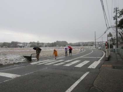 今朝は粉雪が舞う寒い朝になりました。