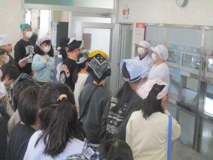 おいしい給食を作ってくださった調理員さんに、心を込めて挨拶をしました。