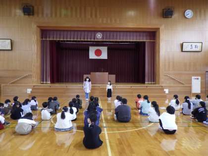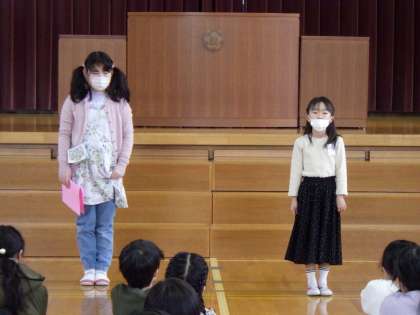 児童を代表して、この一年間がんばったことや新学年度の目標を堂々と語りました。二人ともとても輝いていました。