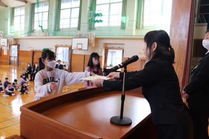 書き初め大会の努力をみんなで讃えました。これからも挑戦し続けてくださいね。