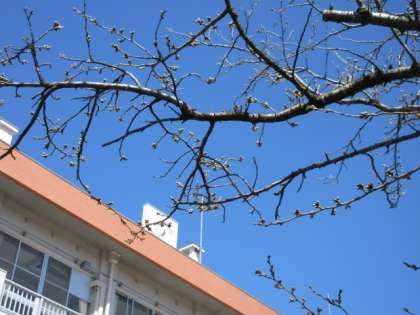 サクラのつぼみがほころび、花壇のチューリップも大きくなってきました。春の訪れはもう間もなくのようです。
