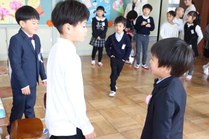 入学式前に初めて1年生教室に入りました。みんなわくわくしています。